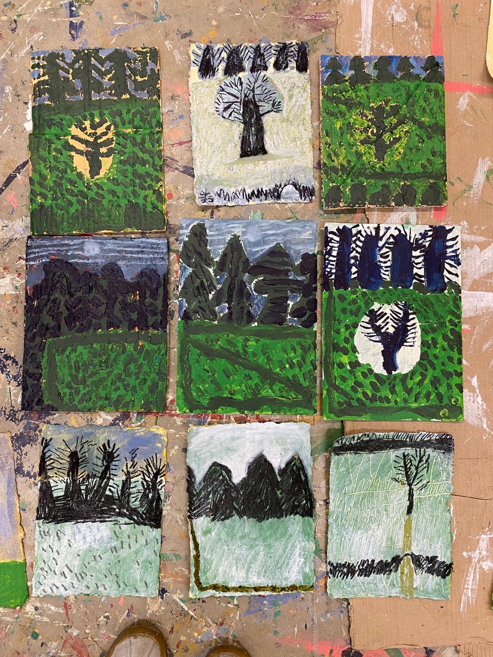 Rosa works with simple, accessible materials—nothing fancy or expensive. You’ll mainly use paper or card, along with a small selection of paints and drawing tools such as watercolour, oil paint, oil pastel, acrylic, and brushes of different sizes. You’re also encouraged to work with whatever materials you already have. A full supply list, with flexible alternatives, is provided inside the course.