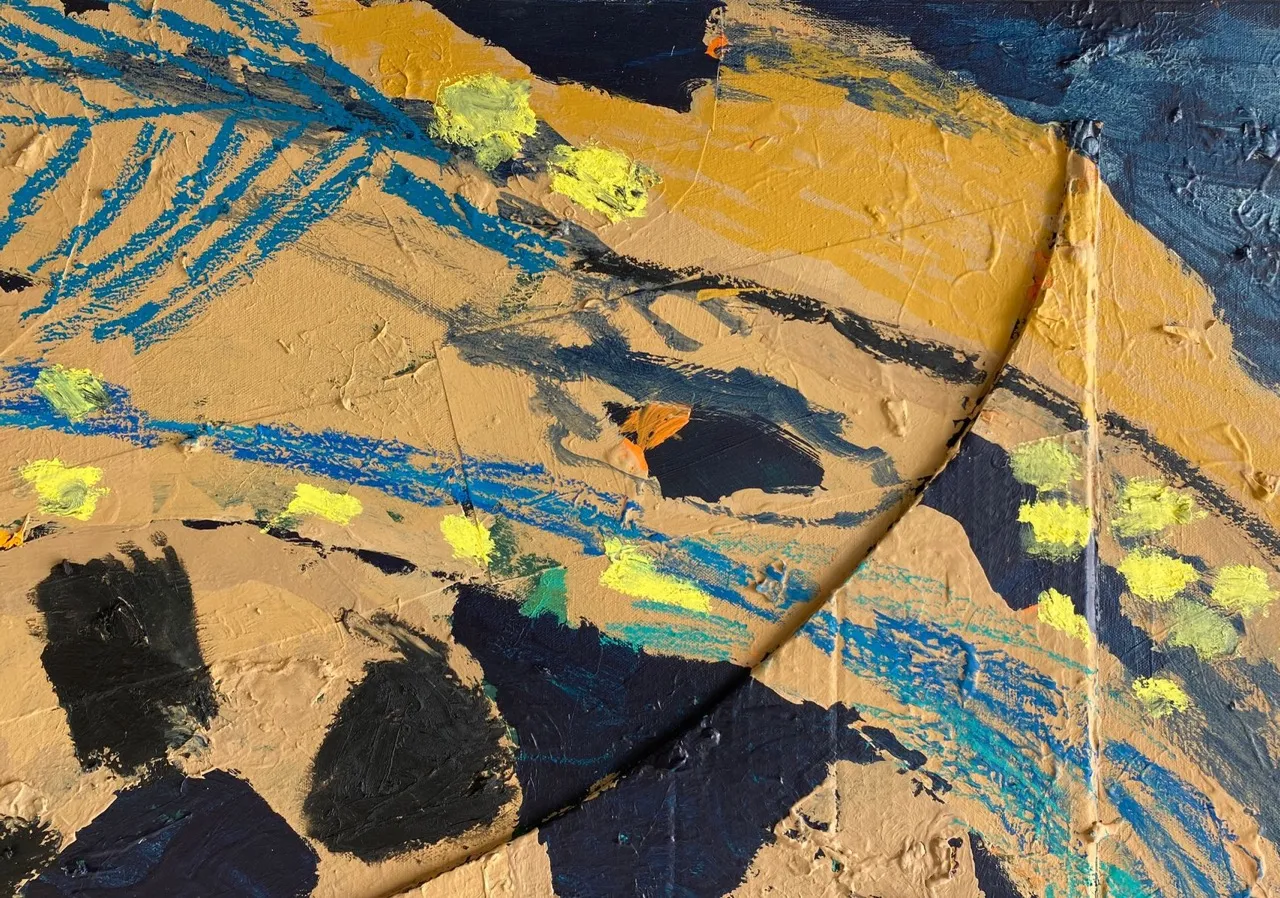 Combine oil pastel, oil paint, and acrylic on the same surface for rich, layered texture.